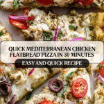 This 30-Minute Mediterranean Chicken Flatbread Pizza is a quick and flavorful weeknight dinner that combines tender chicken, fresh vegetables, and a blend of mozzarella and feta cheeses on a crispy flatbread crust. Ready in under 30 minutes, it offers a high-protein, vibrant Mediterranean-inspired meal that is both satisfying and easy to prepare, perfect for busy schedules or meal prepping.