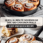 These 30-minute sourdough discard cinnamon rolls are a quick and delicious way to use up your sourdough starter discard. Soft, tender, and filled with a cinnamon-sugar swirl, they’re perfect for a weekend breakfast or an indulgent snack.