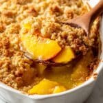 - Serve: Spoon warm peach cobbler into bowls and optionally top with ice cream for a delicious dessert experience.