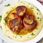 Tender pork medallions wrapped in crispy bacon, seasoned with a smoky, savory spice rub, pan-seared and finished in the oven for a juicy and flavorful main dish perfect for a family dinner.