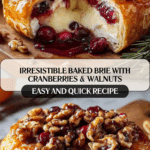 Baked Brie with Cranberries and Walnuts is an elegant and crowd-pleasing appetizer featuring creamy Brie cheese layered with tart dried cranberries and crunchy walnuts, all wrapped in a golden, flaky puff pastry. Perfect for holiday gatherings, this dish combines rich, melty cheese with sweet and nutty accents, creating a visually stunning centerpiece that is as delicious as it is impressive.