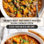 Keywords: beef stew, sweet potato stew, slow cooker stew, beef chuck roast recipe, hearty stew recipe, easy slow cooker meal