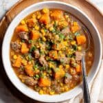 Keywords: beef stew, sweet potato stew, slow cooker stew, beef chuck roast recipe, hearty stew recipe, easy slow cooker meal