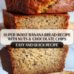 This Best Banana Bread recipe is super moist and packed with sweet ripe bananas, cinnamon, and your choice of nuts or chocolate chips. It’s a classic homemade treat perfect for breakfast, snack, or dessert, featuring a tender crumb and balanced sweetness. With simple ingredients and straightforward steps, you can bake a delicious loaf that’s sure to please everyone.