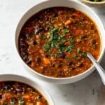 This hearty black bean and lentil soup is a comforting and nutritious meal perfect for any day. Packed with warming spices and fresh vegetables, it offers a delicious way to enjoy plant-based protein in a cozy bowl.