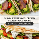 These BLT wraps with secret sauce are a fresh and flavorful twist on the classic sandwich. Packed with crispy bacon, ripe avocado, and a creamy, tangy sauce, they make for a quick and satisfying meal. Perfect for lunch or a light dinner, these wraps come together easily and taste delicious.