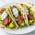 These BLT Wraps With Secret Sauce combine crispy bacon, fresh romaine lettuce, juicy tomatoes, and creamy avocado, all wrapped in a soft flour tortilla and enhanced by a flavorful, tangy secret sauce made with mayonnaise, Greek yogurt, Dijon mustard, and honey. Perfect for a quick lunch or light dinner, these wraps are easy to prepare and sure to satisfy.