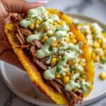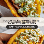 These Braised Brisket Tacos with Street Corn and Jalapeño Lime Ranch combine tender, slow-cooked beef brisket with a flavorful chipotle-spiced braising liquid. Served in warm, cheesy tortillas and topped with a fresh, creamy street corn salad and zesty jalapeño lime ranch, this recipe delivers a perfect balance of smoky, spicy, tangy, and creamy flavors for an irresistible taco experience.