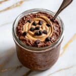 - Serve: In the morning, stir the oats and top with extra chocolate chips or a drizzle of peanut butter. Serve cold or warm with a quick microwave heat if preferred.