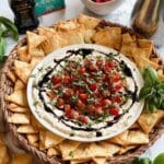Keywords: Bruschetta Dip, Italian appetizer, soft cheese spread, balsamic glaze, easy appetizer, party dip, herbed cheese, fresh basil, tomato dip