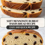 Bubbat is a traditional Mennonite raisin bread known for its soft, slightly sweet texture and rich flavor. This homemade bread combines warm milk, melted butter, and cinnamon-spiced raisins to create a delightful loaf that’s perfect for breakfast or a comforting snack.