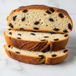 Bubbat, a traditional Mennonite raisin bread, is soft, slightly sweet, and filled with juicy raisins. This comforting loaf is perfect for breakfast or a snack, offering a delightful cinnamon aroma and tender crumb.