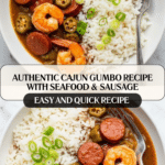 A rich and flavorful Cajun Gumbo featuring a deeply browned roux, sautéed vegetables, and a hearty mix of sausage, seafood, and okra. This classic Louisiana dish is slow-simmered for depth of flavor and served over white rice with a kick from Cajun seasoning and Tabasco sauce.