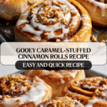 These Caramel-Stuffed Cinnamon Rolls are a decadent twist on the classic cinnamon roll, featuring a gooey caramel filling that complements the warm cinnamon sugar. Soft, fluffy dough is filled with a cinnamon-butter mixture and luscious caramel, baked to golden perfection, then topped with a smooth vanilla glaze for a sweet, irresistible treat perfect for breakfast or dessert.