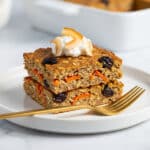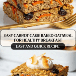 Keywords: carrot cake baked oatmeal, healthy baked oatmeal recipe, carrot oatmeal bake, breakfast baked oats, spiced oatmeal bake, vegetarian breakfast