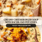 Keywords: Cheeseburger Soup, bacon soup, ground beef soup, creamy potato soup, comfort food soup, easy soup recipe