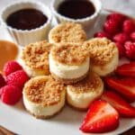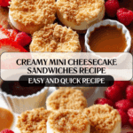 These Cheesecake Sandwiches are delightful bite-sized treats featuring a buttery graham cracker crust, creamy cheesecake filling, and a crunchy crumb topping. Perfect for parties or a sweet snack, they are baked in a silicone mold to create perfectly portioned sandwiches that pair beautifully with your favorite syrups.