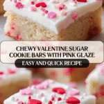 These Chewy Valentine Sugar Cookie Bars deliver all the flavor of classic sugar cookies without the fuss of rolling or cutting. Thick, soft, and festive with pink glaze and sprinkles, they bake perfectly in a simple 8×8 pan—ideal for sharing at any celebration.