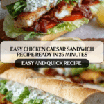 The Chicken Caesar Sandwich is a quick and satisfying meal that combines tender, juicy chicken with crisp romaine lettuce and creamy Caesar dressing. Perfect for lunch or a light dinner, it’s easy to prepare and full of classic flavors.