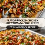 Chicken Shawarma Nachos combine the bold, aromatic flavors of traditional Middle Eastern chicken shawarma with the fun, shareable nature of nachos, making it a perfect dish for family dinners and game nights. This recipe features marinated oven-roasted chicken topped on crispy tortilla chips with fresh salsa, creamy feta cheese, and a smooth tahini sauce for a delightful fusion experience.