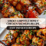 Keywords: chipotle honey chicken skewers, grilled chicken skewers, smoky chicken recipe, honey glazed chicken, barbecue chicken, easy chicken skewers, grilled dinner