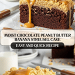 This chocolate peanut butter banana streusel cake is super moist and bursting with rich flavors. The combination of chocolate, peanut butter, and ripe bananas creates a perfectly balanced dessert topped with a crunchy crumble. Whether you make it as a large cake or mini loaves, it’s sure to delight every sweet tooth.