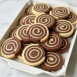 Keywords: Chocolate Pinwheel Cookies, vanilla and chocolate cookies, spiral cookies, sweet snack, holiday cookies, buttery cookies, homemade cookies
