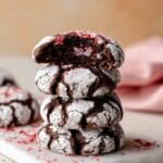 These chocolate raspberry crinkle cookies combine the rich, fudgy texture of classic chocolate crinkles with the bright, fruity flavor of real raspberries. Soft-baked and chewy, they’re coated in a delicate raspberry-confectioners’ sugar topping that melts in your mouth for a perfect treat.