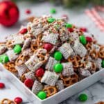 Keywords: Christmas Puppy Chow, holiday snack, Chex mix, peanut butter chocolate, festive snack, holiday treat, easy Christmas recipe