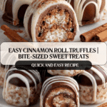 Keywords: Cinnamon Roll Truffles, cinnamon roll dessert, truffle recipe, white chocolate truffles, holiday treats, easy cinnamon snacks