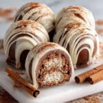 Keywords: Cinnamon Roll Truffles, cinnamon roll dessert, truffle recipe, white chocolate truffles, holiday treats, easy cinnamon snacks