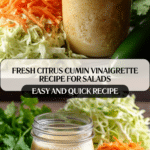 A fresh and zesty Citrus Cumin Vinaigrette combining lime and orange juices with cumin, chili powder, and garlic to create a bright, healthy dressing perfect for enhancing Mexican coleslaw or salads.
