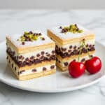 - Cool and Serve: Remove the dish from the oven and allow it to cool for at least 30 minutes. Once cooled, cut into squares and serve. Optionally garnish with chopped pistachios, maraschino cherries, or extra chocolate chips for added flavor and presentation.