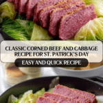 This classic Corned Beef and Cabbage recipe features a tender, slow-cooked brisket braised in ale with aromatic vegetables and spices, paired with caramelized cabbage and onions. Perfectly seasoned and cooked low and slow, the corned beef becomes fork-tender and juicy, complemented by the sweet and savory cabbage side. Ideal for a comforting family meal or a festive occasion like St. Patrick’s Day.