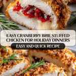 Keywords: Cranberry Brie Stuffed Chicken, stuffed chicken breast recipe, cranberry sauce chicken, brie cheese chicken, oven baked stuffed chicken, holiday chicken recipe