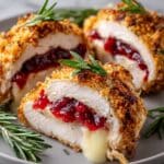 Keywords: Cranberry Brie Stuffed Chicken, stuffed chicken breast recipe, cranberry sauce chicken, brie cheese chicken, oven baked stuffed chicken, holiday chicken recipe