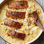 This Creamed Corn Orzo with Salmon is a comforting and flavorful dish perfect for a hearty weeknight dinner. The tender salmon pairs beautifully with the creamy, cheesy orzo and sweet corn, making it a satisfying one-pan meal.