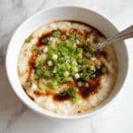This traditional Chinese Congee recipe is a comforting and versatile rice porridge made by slow-cooking glutinous rice in a flavorful broth. Perfect for a nourishing breakfast or light meal, it features a creamy texture and is garnished with fresh green onions, julienned ginger, sesame oil, and soy sauce to enhance its delicate flavors.