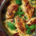 This Creamy Tuscan Chicken recipe is a rich and flavorful dish that brings together tender chicken breasts in a luscious, garlicky cream sauce with sun-dried tomatoes and fresh spinach. Perfect for a comforting weeknight dinner, it’s easy to prepare yet feels indulgent and elegant.