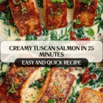 This Creamy Tuscan Salmon recipe features pan-seared salmon fillets smothered in a rich and flavorful creamy sauce made with sun-dried tomatoes, garlic, spinach, and Parmesan cheese. Ready in just 25 minutes, it’s a perfect quick and elegant meal that’s both comforting and packed with vibrant Italian-inspired flavors.