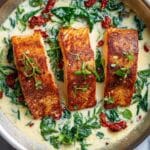 This Creamy Tuscan Salmon recipe features pan-seared salmon fillets smothered in a rich and flavorful creamy sauce made with sun-dried tomatoes, garlic, spinach, and Parmesan cheese. Ready in just 25 minutes, it’s a perfect quick and elegant meal that’s both comforting and packed with vibrant Italian-inspired flavors.