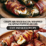 These Crispy Air Fryer Bacon-Wrapped Jalapeno Poppers are a perfect blend of smoky bacon, creamy cheese, and spicy jalapenos. Quick to prepare and cooked to crispy perfection in the air fryer, they make an ideal appetizer or snack for any occasion.