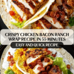 The Crispy Chicken Bacon Ranch Wrap is a flavorful and satisfying meal perfect for lunch or dinner. With tender, seasoned chicken strips, crispy bacon, fresh veggies, and a creamy ranch dressing, it’s a delightful combination of textures and tastes wrapped in a soft flour tortilla.