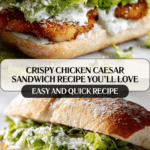 This Crispy Chicken Caesar Sandwich combines juicy, breaded chicken cutlets fried to golden perfection with a creamy homemade Caesar dressing and fresh romaine lettuce, all nestled inside a crusty French baguette. It’s a satisfying twist on the classic Caesar salad, perfect for a hearty lunch or casual dinner.