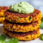 These Crispy Sweet Potato & Red Lentil Patties are a delicious and nutritious vegetarian option that combines tender red lentils, grated sweet potato, and aromatic spices. Pan-fried to golden perfection and served with a creamy avocado cilantro sauce, they make a perfect flavorful appetizer or light meal.