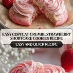 These Delicious Crumbl Strawberry Shortcake Cookies are a homemade copycat version of the famous Crumbl treat. Soft, fluffy, and bursting with strawberry flavor, these cake-like cookies are topped with a light whipped cream cheese frosting and a signature strawberry-vanilla crumble topping. Perfect for parties or a sweet weekend treat, they deliver that bakery-quality experience without the long lines or high price.