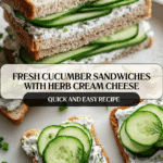 Cucumber sandwiches with herb cream cheese are a classic, refreshing treat perfect for afternoon tea or light gatherings. The combination of creamy, flavorful cheese and crisp cucumber makes for an elegant yet simple bite.