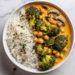 This flavorful broccoli, chickpea, and mushroom curry brings a delicious blend of spices and creamy coconut milk to your dinner table. Ready in just 30 minutes, it’s a wholesome vegetarian dish that’s both comforting and nutritious.