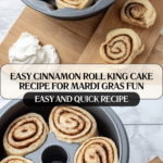 This easy King Cake recipe offers a fun and simple twist on the traditional Mardi Gras treat using cinnamon rolls. Vibrant with purple, green, and gold frosting, it’s perfect for celebrating with family and friends without spending hours in the kitchen.