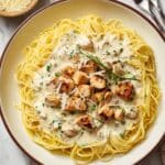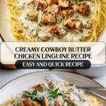 This Easy Cowboy Butter Chicken Linguine is a creamy, flavorful pasta dish featuring sautéed chicken, garlic, red pepper flakes, and a rich butter and heavy cream sauce, all perfectly tossed with linguine pasta. Ready in just 35 minutes, it’s a delicious weeknight dinner that combines the hearty taste of tender chicken with a luscious creamy sauce and a hint of spice.